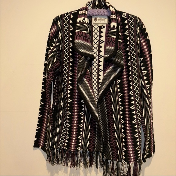 Outback Trading Company Women's Sierra Jacket Patterned Sweater - Black, White, Purple Size M