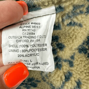 Outback Women’s Alpine Fleece Vest Size L Brown Floral Pockets Outdoor Soft