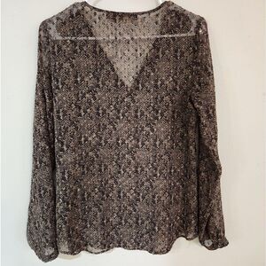 Outback red small top snake print animal print blouse with front pockets semi sheer