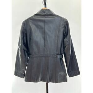 Outbrook Y2K Black Belted Leather Jacket Full Zip Sz M Dark Academia City Boy