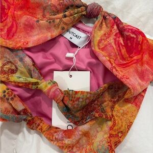 Vibrant multicolor two-piece set with ruffled details. Perfect for a bold look by OUTCAST, top medium, bottom LARGE