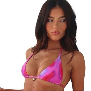 Brand new with tags Outcast Swim Paloma Triangle Bikini Top Size Large. Color is Sol Rosa - a Pink, Red and Purple Swirl print. Does not have padding and does NOT have the pockets to add any. No stains or holes. Please ask all questions before purchasing.