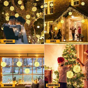 【Weatherproof and Safer Outdoor Sphere Lights】IP44 waterproof chrismtas lights can keep this outdoor patio lights working perfectly for outdoor (even in the raining ,snowy, or storm days),high-quality hanging lights for tree are rust-proof,very durable and has a longer service life than other sphere lights garden decor.