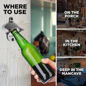 INDOOR/OUTDOOR - The is a rust proof bottle opener perfect for indoor or outdoor use. Mount it on your patio, in your man cave, in your kitchen or bar. It s attractive matted nickel finish complements any setting.