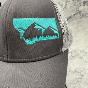 Outdoor Cap, Montana Embroidered Design. Gray Mesh Snapback Cap. Good used condition! Stylish gray cap with breathable mesh. Perfect for casual wear.