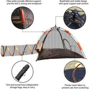🧿[Collapsible for Easy Carrying] Our cat tents for outside includes a tent house and a cat play tunnel. Both the cat tent and the tunnel are collapsible in design and the cat tent is very easy to set up and take down in just a few tens of seconds. The portable and lightweight design makes the cat tent very easy to transport. Lightweight materials and the tent's foldable design make it easier to carry around. The lightweight design can easily be folded into the storage bag inside for easy storage.