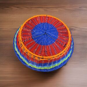 Outdoor Chip and Dip Set Woven Rainbow Coated Multicolor Basket White Ceramic