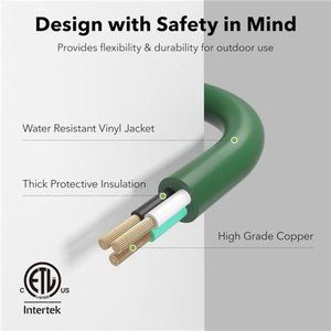 🧿Dark Green Cord: This green extension cord blends seamlessly into the landscape, making it less obtrusive and more visually appealing. Perfect choice for seasonal lighting and festive decorations.