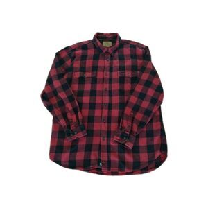 Sears brand Outdoor Life Button-Up Red & Black cabincore checkered plaid flannel long sleeve shirt Size XXLT. Warm, great for layering while hiking, camping, fishing or any other outdoor activity. Machine washable, comes ready to wear - clean, ironed and stain free. All original buttons attached with minor wear from use. 32" length, 25" pit to pit, 26" sleeves.