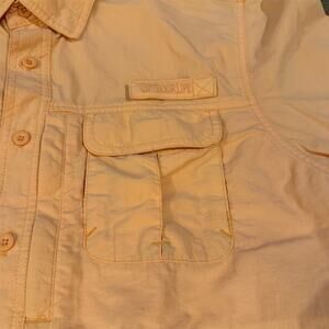 Outdoor Life M Orange Short Sleeve Button-Up Fishing Shirt Pockets Vented Hiking
