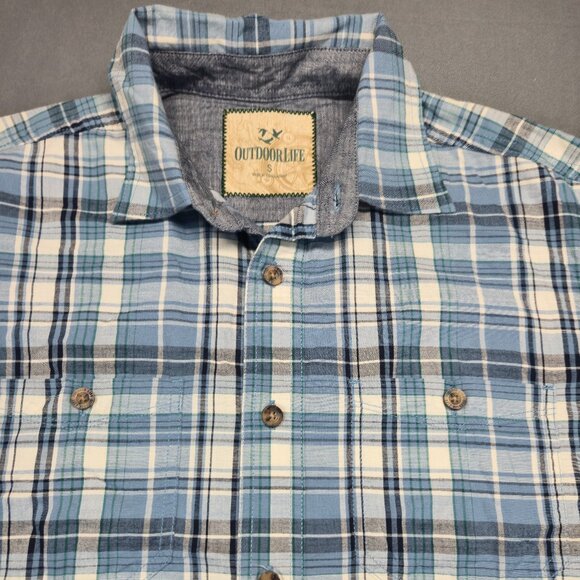 Outdoor Life Men’s Blue Plaid Short Sleeve Button-Up Shirt Size S Cotton