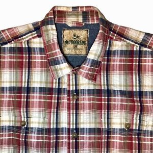 Outdoor Life Seersucker Plaid Short Sleeve Button Down in White/Red/Navy Men’s L