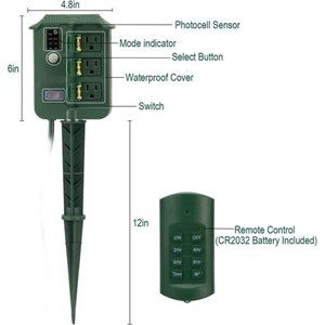Outdoor Light Timer Waterproof, Dusk to Dawn Power Stake Timer, 6 Outlets