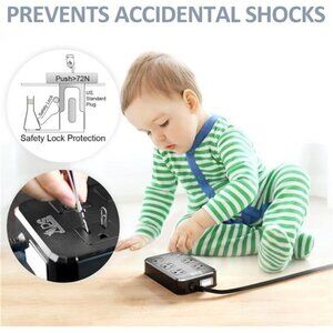 🧿【Safety-First Design】Our patented socket design only accommodates standard US plugs. Equipped with a safety lock, our system requires both prongs of a US plug for activation, restricting access to unintended items and averting potential electrocution.
