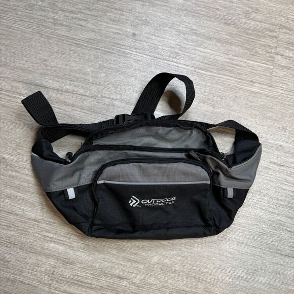 Outdoor Products Fanny Pack Waist Bag Hiking Zipper Pocket Adjustable Black Gray
