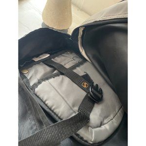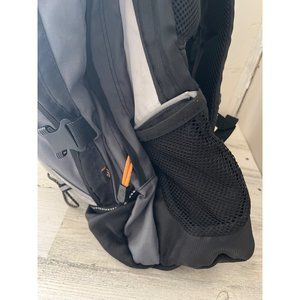 Outdoor Products padded zippered backpack with side pouches. Has lick, but no key. Has climbing clip. Has padding for electronics and pouches inside. Good pre-owned condition.