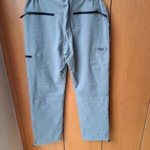 One pair of outdoor women's quick dry hiking pants. Zippered pockets and drawstring leg bottoms. Straight legs. Light grey color. 88% Nylon and 12" Spandex. Size 28"W and 29"L. Never worn. From a non-smoking home.