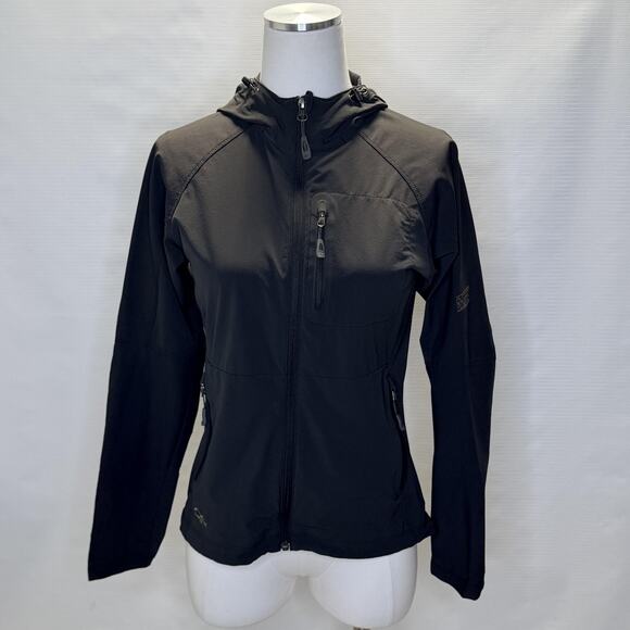Outdoor Research Jacket Womens Small Black Softshell Hooded Full Zip Hiking