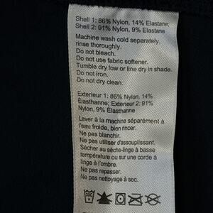 Materials: Shell 1: 86% nylon, 14% elastane; Shell 2: 91% nylon, 9% elastane (per care tag).