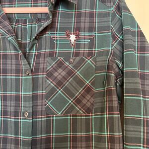 Outdoor Research Kulshan Tunic Green Fir Plaid Pockets Button Up Medium Hiking