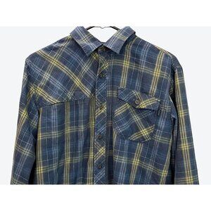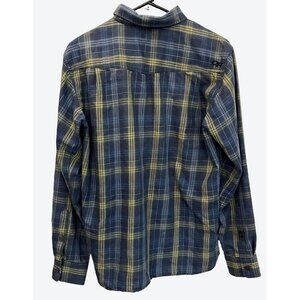 Outdoor Research Men's Medium Long Sleeve Button Front Plaid Shirt Muted Navy Yellow Red