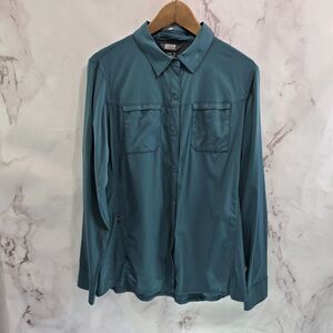 Outdoor Research Shirt Women Large Blue Optimist Long Sleeve Snap Button Sun UPF