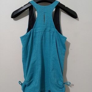 Stylish blue tank top by Outdoor Research. Features a racerback design. Perfect for outdoor activities.