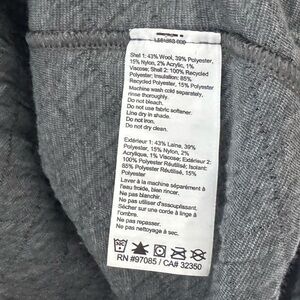* Fabric: Shell is 43% Wool, 39% Poly,