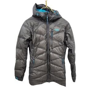 Outdoor Research Women's Floodlight Parka Goose Down Size XS Grey Blue
