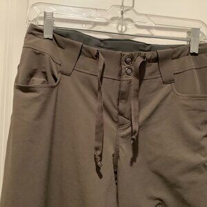 Lightweight, water & wind resistant fabric. Relaxed fit legs. Tricot-lined waistband with drawcord for a perfect fit. Belt loops, front pockets, left hip security zip pocket, back zip pockets.