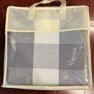 NWT 4x6 Grey Buffalo Plaid Outdoor Rug. Hand-woven & washable. Never opened.