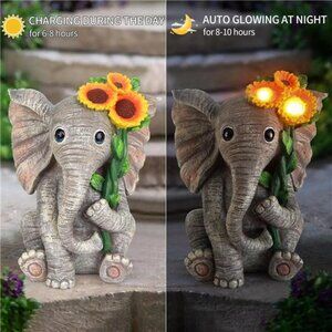 Cute Garden Decor: This garden statue is designed with a cute baby elephant holding a sunflower in its hands, it adds nature and warmth to your home and garden. Meanwhile, the elephant sunflower sculpture represents strength and optimism, and good luck, which makes this patio decor perfect as a gift for the one you care about.