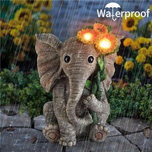 Outdoor Sculpture Figurine Statue Elephant Decor, Solar Garden Statues