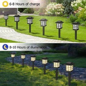 These solar garden lights use high-efficiency waterproof solar panels. After solar charging for 6-8 hours during the day, they will automatically turn on at night and continue to light up for 8-10 hours.