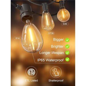 🧿Waterproof and ETL Certified: With a high IP65 waterproof rating, these weatherproof outdoor patio lights can withstand rain, sun, wind, snow, humidity, and extreme temperatures. ETL-listed and designed with heavy duty cable and layers of insulation