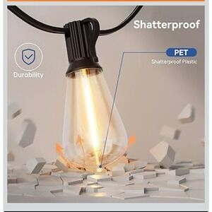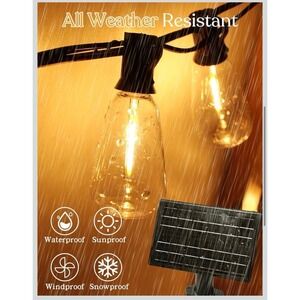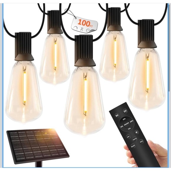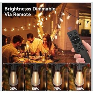 100 FT Solar String Lights Outdoor Waterproof with Remote & USB Port, Solar Power Patio Hanging Lights with Dimmer, Shatterproof LED Edison Bulb Outdoor String Lights for Outside Cafe Yard Fence.