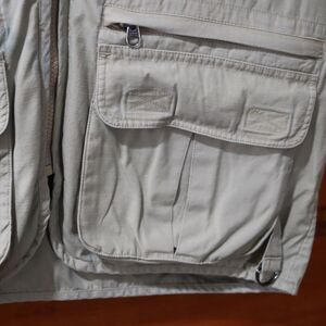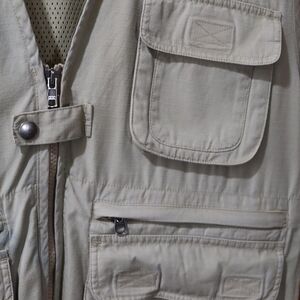 Style: Utility vest with multiple pockets, outdoor/fishing inspired