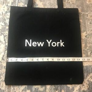 Stylish black tote bag with bold white text. Perfect for carrying essentials. Durable and versatile.