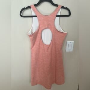 A peachy soft dress made in FreeForm, featuring a built-in liner for extra coverage and a circle cutout for flair.