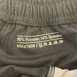 In great used condition. No holes or stains. Gray heathered color. 3" inseam. Has two pockets. High rise. Women's size Small.