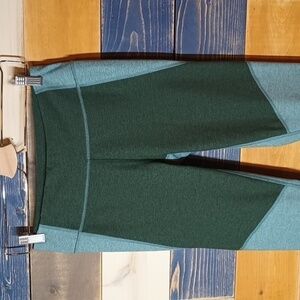 Outdoor Voices Leggings in a size M. Excellent condition. Wonderful colors! Soft blue and forest green. Cropped length.