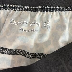 Outdoor Voices Leopard Print Relay 3" Short - Size Medium. Excellent pre-owned condition. our go-to unlined short made in OV’s lightweight quick-drying recycled polyester fabric featuring a hidden zip pocket. 86% Recycled Polyester 14% Spandex