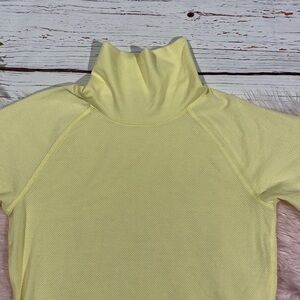 Outdoor Voices light yellow colored fast track mesh turtleneck top. This top is in great used condition