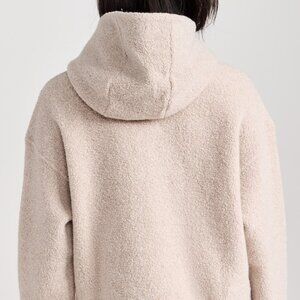Cropped pullover made with fleece and recycled wool. Designed with a relaxed fit, roomy pockets, and a lined hood. Soft and cozy. Has the warmth of wool without being itchy at all.