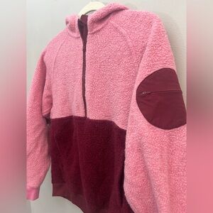 Outdoor Voices MegaFleece Half-Zip Hoodie in Truffle Pink Burgundy, Size Small