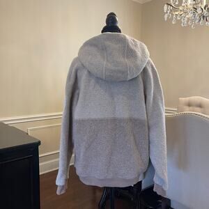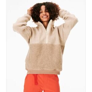 Outdoor Voices Megafleece 1/2 Zip Hoodie Hooded Sherpa Pullover Women’s Size M Wool Blend Tan Oatmeal Colorblock