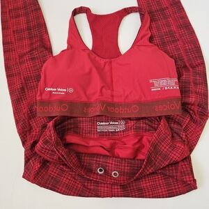 Outdoor Voices Move Free Red Legging Bra Pomegranate Red Plaid Compression Set M