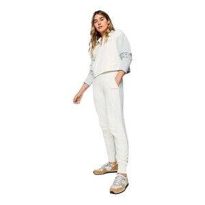 The Pickup Jogger by Outdoor Voices in Dove/Bone. A colorblocked, slightly tapered jogger made in plush Soft Cotton Terry. Two front pockets. Drawcord at wait.