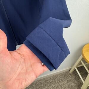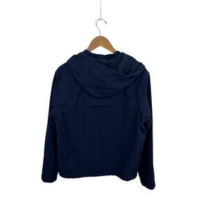Navy blue, full zip front, zippered pockets, hooded, size small.