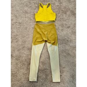 Outdoor Voices SET Leggings Sports Bra Crop Yellow Colorblock Size Small EUC